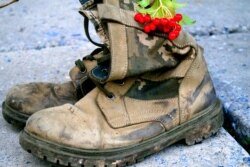 Військове взуття, використане в інсталяції, за словами директорки історичного музею Юлії Пісчанської, належало бійцям, які загинули в «котлі».