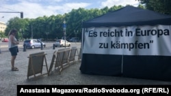 «Хватит воевать в Европе», «Мир всем детям Донбасса» и «Жизнь Донбасса – дети важны» – таковы три ключевых лозунга, которые виднеются на установленных вблизи Бранденбургских ворот палатках, являющихся основой так называемой фотовыставки. Перед ними выставлены невысокие деревянные стенды с фотографиями детей.