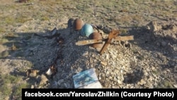 Згодом ми поїхали в бік Логвинова. Нам сказали, що в селі є військові, які можуть показати тіла. Це були замурзані хлопці років двадцяти-тридцяти, які чомусь раді були допомогти й показали могили. У землі був хрест, зроблений із дерева від ящиків з написом – «Хритонюк», він якраз був у нашій базі даних. На хресті висіли залишки української амуніції. Один з цих «ДНРівців» сказав, що особисто його закопував. Ми його забрали. Ще один лежав біля дороги. Його, напевно, вибуховою хвилею розірвало, бо все було подерте, а його останки розкидані радіусом у кілька метрів. Згодом ми поїхали на іншу локацію, а з нами якісь місцеві «ополченці». Вони з інтересом спостерігали за нашою роботою, інколи радили місця, де варто було б пошукати, бо начебто вони щось там бачили.