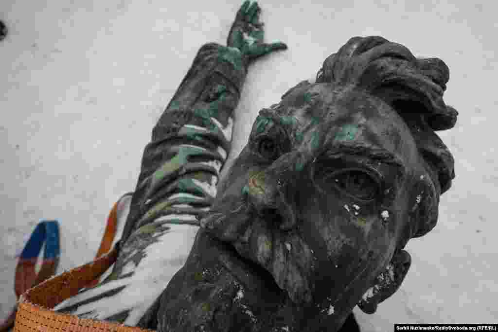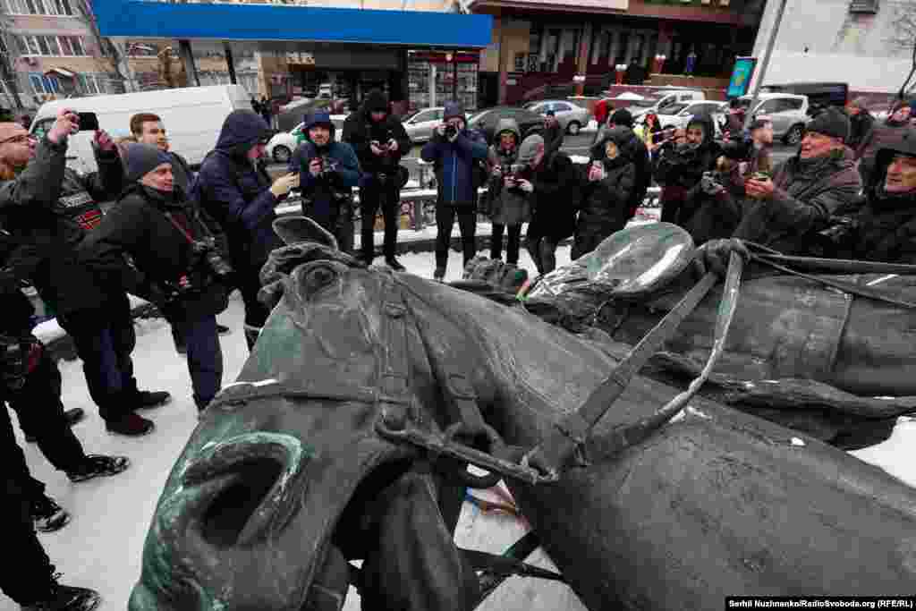 Кияни та журналісти з'юрмилися навколо демонтованого пам'ятника Щорсу