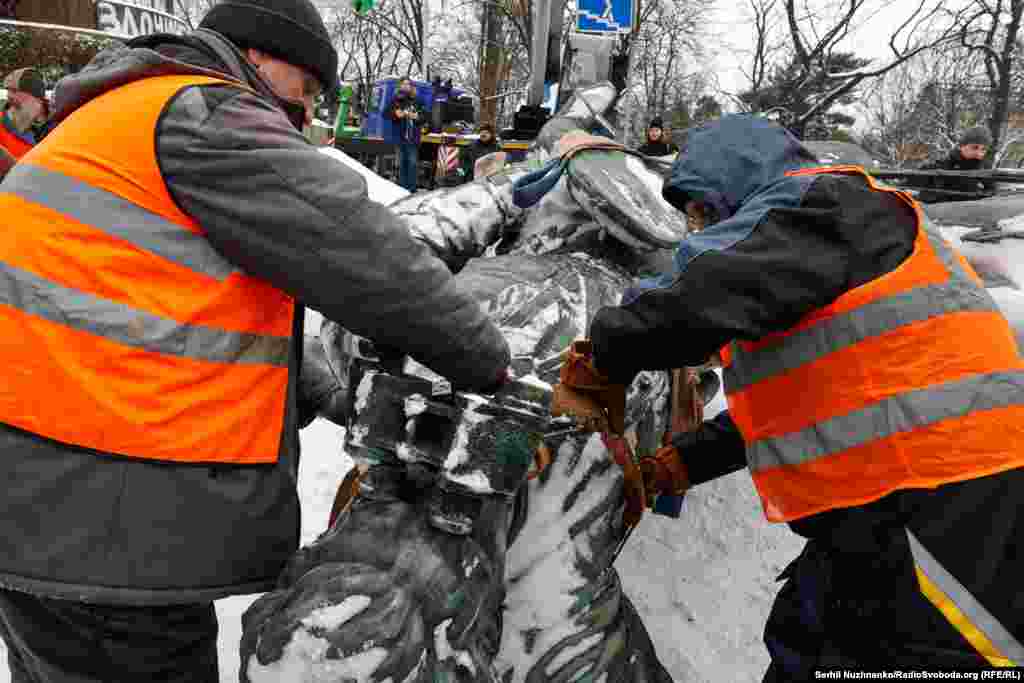У Києві демонтували пам'ятник більшовицькому діячеві Миколі Щорсу (фоторепортаж)