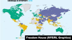 Американська неурядова організація Freedom House класифікує Україну як "частково вільну" за рівнем свободи інтернету у своєму останньому звіті Freedom on the Net 2018.