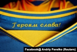 Але УЄФА, натомість, не в захваті від другого елемента на футболках – гасла «Слава Україні!», що було вишито на них. Патріотичний бойовий клич вважався «політичним». Тож замість цього було зроблено компроміс, згідно з яким це було написано всередині сорочки, де воно залишається досі.