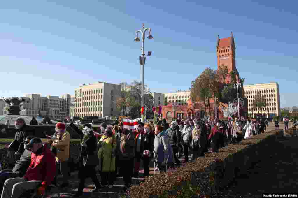 Учасники вимагали відставки Олександра Лукашенка і проведення нових справедливих президентських виборів після голосування 9 серпня. Багато хто вважає, що ці вибори були затьмарені порушеннями і фальсифікаціями.