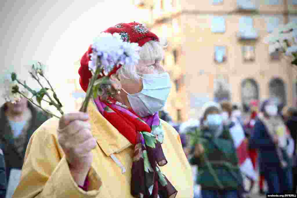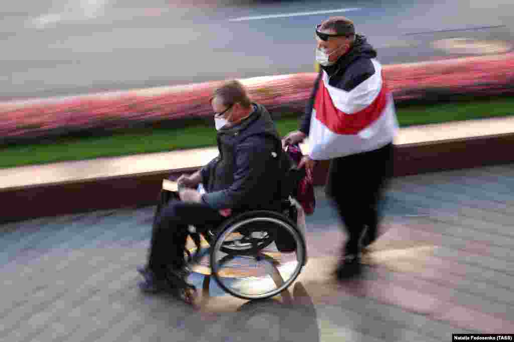Білоруси з інвалідністю несли квіти і заборонені біло-червоно-білі прапори опозиції, коли мирно проходили вулицями Мінська 22 жовтня під час опозиційного заходу під назвою «Марш людей з нескінченними можливостями».