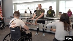 «Я люблю життя, таке відчуття, що я хочу жити, я хочу рухатись постійно. Руки в мене, слава Богу, є, і я ще можу бути корисним, скажімо, для війська, тому що це можна навіть робити дистанційно. Необов'язково бути на передовій», – розповідає Голосу Америки військовослужбовець, який перебуває на протезуванні в Міннесоті.
