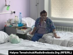 «Відчуваю слабість, втомлююсь швидко, коли піднімаюсь сходами, задихаюсь, маю прискорене серцебиття», – розповіла медична працівниця. Вона проходить кисневу терапію всередині гіпербаричної барокамери у лікарні швидкої допомоги. Жінка дихає киснем підвищеного тиску.