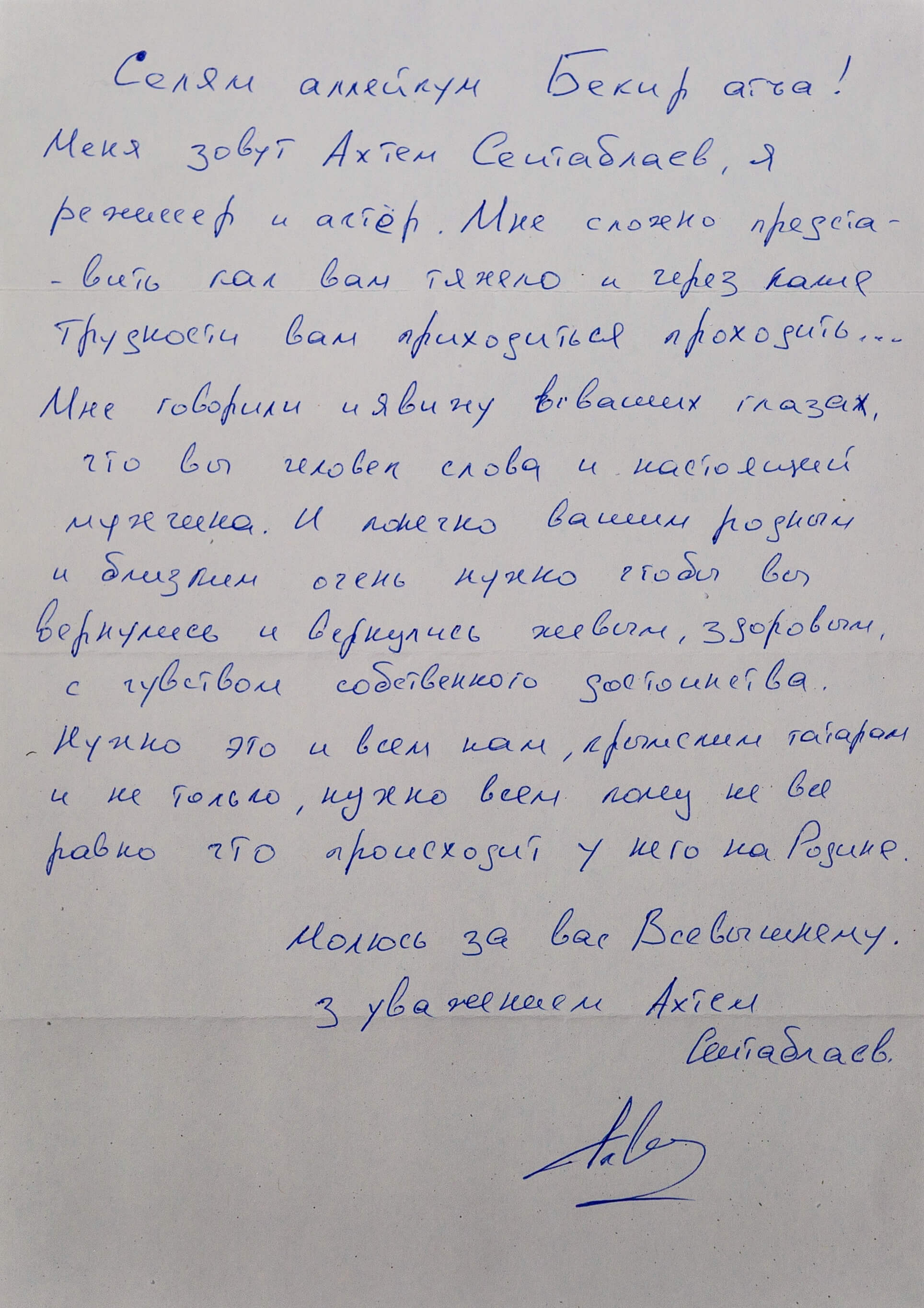 Надіслати лист Бекіру Дегерменджі можна через Центр громадянських свобод: