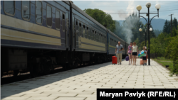 З кількох потягів, які зустріло Радіо Свобода у Ворохті, вийшли переважно жінки і діти.