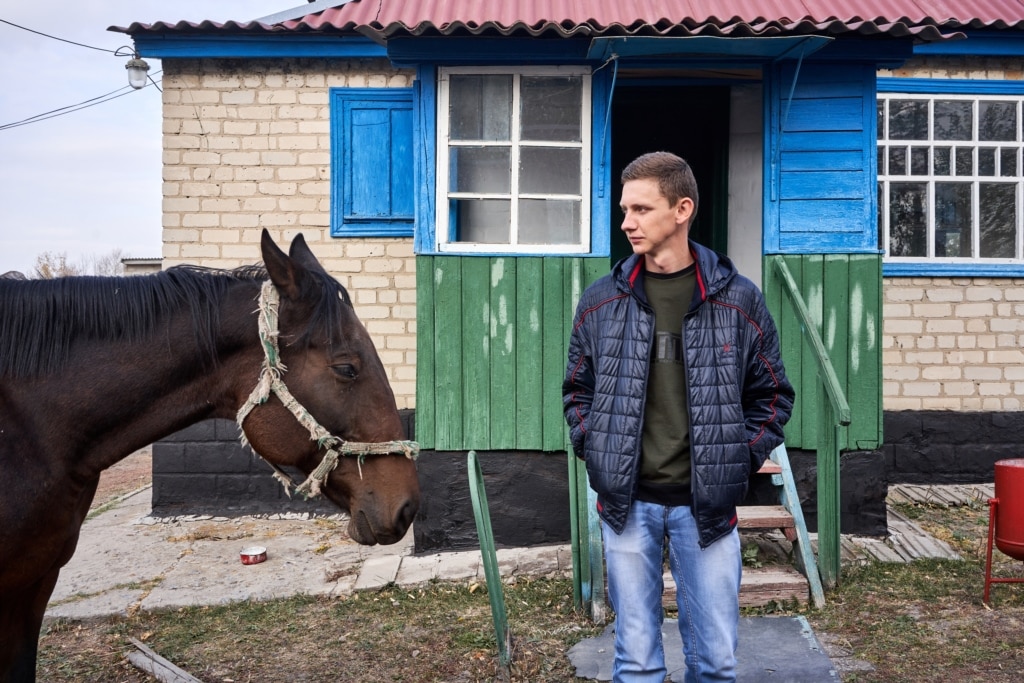 Біля наступного загону разом із кіньми нас біля загорожі зустрічає Світлана: вона «днювальна», доглядає за кіньми та стайнею – десь побілити, десь прибрати. Цікавимось – як працюється: «Та як...Ніяк. Без зарплатні. Січень нема, лютий нема, вересень нема – у борг виживаю». «А піти звідси не думали?» – питаємо, дізнавшись про її ставку – як і у багатьох навкруги вона мінімальна – менше 4-х тисяч гривень. «Та куди? – сміється. – Стайня і школа – більше нікуди!»