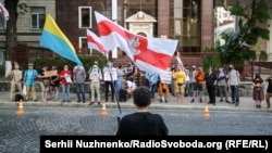 У вівторок, 23 червня, біля посольства Білорусі у Києві відбулася акція на підтримку права білорусів на демократичні вибори. Про це повідомляє кореспондент Радіо Свобода.