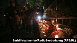 Квіти і лампадки з’явилися і біля білоруського посольства в Києві.