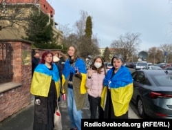 Більшість учасників були з українською символікою – прапорами або синьо-жовтими стрічками на одязі.