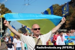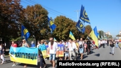 Як повідомляє кореспондент Радіо Свобода, у марші взяли участь учасники бойових дій на Донбасі, волонтери, рідні загиблих, майданівці.