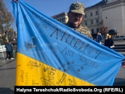 Військовослужбовець 80-ої бригади Сергій Жура також пообіцяв передати прапор із підписами побратимам, які зараз виконують бойові завдання.