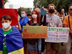 У руках вони тримали плакати з написами «Зелене світло капітуляції?», «Капітуляція – це плювок на могили Героїв» тощо. Одна з учасниць принесла на акцію іграшкову зелену жабу.