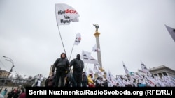 Протестувальники рушили ходою до Офісу президента, щоб озвучити свої вимоги. Як передає кореспондент Радіо Свобода у ці хвилини проїзд до ОПУ заблокований правоохоронцями і їхнім транспортом.
