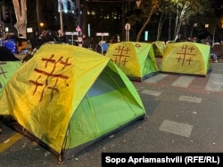 Увечері 17 листопада після мітингу протестувальники встановили близько 30 наметів біля Тбіліського державного університету. Учасникам акції роздали пледи, килимки та гарячий чай, привезли біотуалети. Ніч минула спокійно: опозиціонерів не розігнали, зараз вони спілкуються, дивляться фільми та танцюють. Влада та поліція жодних заяв поки не робили.