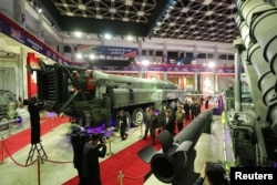 Після того, як на початку цього року Вашингтон звинуватив Пхеньян у постачанні Москві зброї для її війни проти України, на фото в державних ЗМІ видно, як Кім проводить Шойгу через велику оборонну виставку, на якій демонструються ядерні ракети Північної Кореї і те, що спеціалізований сайт NK News, базований у Сеулі, назвав новими безпілотниками.