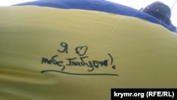 За його словами, на прапорі свої звернення також написали керівники Меджлісу кримськотатарського народу Рефат Чубаров й Ільмі Умеров.
