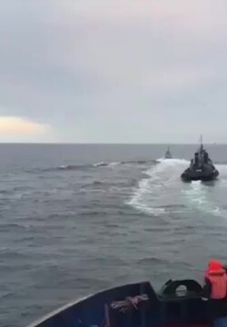 (Відео моменту, коли корабель Росії цілеспрямовано таранить український човен у Керченській протоці)