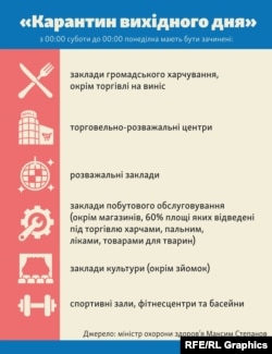 Кабінет міністрів України опублікував на своєму сайті постанову від 11 листопада, яка запроваджує карантин вихідного дня і поширює дію протиепідемічних обмежень, які стосувалися помаранчевої зони карантину, на всі регіони країни.