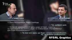 Кандидат на посаду президента Володимир Зеленський відповів на запитання журналістів, які шанси у олігарха Ігоря Коломойського повернути собі націоналізований «Приватбанк». Про це йдеться у спецрепортажі програми «Схеми: корупція в деталях» (спільний проект Радіо Свобода та телеканалу «UA:Перший») – «Вперед, на Банкову!».