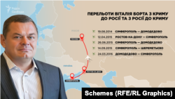 Згідно з інформацією з російських баз даних авіаперельотів, які отримали у своє розпорядження «Схеми», Борт неодноразово літав із Сімферополя до РФ і так само повертався до окупованого півострова.