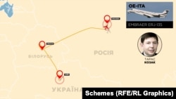 Як виявили «Схеми», цей літак регулярно базується у Мінську і ним користується не тільки родини Козака та Медведчука, але й білоруський олігарх Микола Воробей та чільні менеджери його компаній.