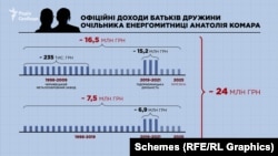 «Схеми» також встановили, що неповнолітня дочка Анатолія Комара вчиться в престижному коледжі в Лондоні King’s College London, що випливає з опису її профіля у соцмережах, де вона також публікує світлини зі столиці Великої Британії. Вартість року навчання в цьому коледжі для іноземних студентів складає близько 26 тисяч фунтів на рік (1,5 мільйона гривень).