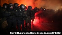 Поліція заявляє про 17 затриманих після сутичок під Офісом президента в Києві під час акції на підтримку засудженого одеського активіста Сергія Стерненка.