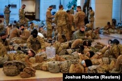 Поки законодавці обговорюють це питання, військові і поліція Національної гвардії розміщені навколо Капітолію для гарантування безпеки.