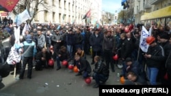 Сьогодні гірники мітингують у Києві вже вдруге за останні два дні. 22 квітня шахтарі від Верховною Радою вимагали від президента звільнити міністра енергетики та вугільної промисловості Володимира Демчишина, виплатити заборгованість із зарплати, а також скликати РНБО, щоб розібратися із кризовою ситуацією у вугільній промисловості.