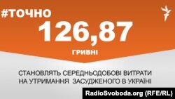 Державна пенітенціарна служба України повідомила, що середньодобова вартість утримання засуджених та осіб, узятих під варту, в розрахунку на одну особи становить 126 гривень 87 копійок. Про це повідомляє #Точно, проект Радіо Свобода.