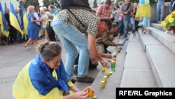 Учасники мітингу пронесли «коридором скорботи» портрети загиблих військовослужбовців та запалили свічки на їхню честь. Також на площі відбувся спеціальний молебень.
