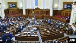 Біля будівлі Верховної Ради України відбувається акція, учасники якої вимагають продовжити роботу парламенту влітку без відпустки для розгляду важливих законопроектів.