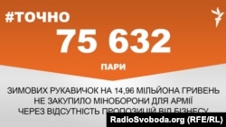Силовики планували закупити 75,6 тисячі пар рукавичок, в середньому по 198 гривень за пару. Товар мав бути пошитий цього року і відправлений в казарми Києва, Одеси та Харкова до 25 листопада. Однак, як повідомили в тендерному комітеті Міноборони, для участі у закупівлі не надійшло жодної пропозиції від бізнесу.