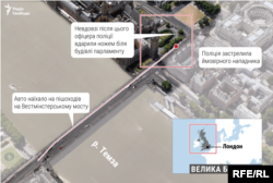 У Великій Британії повідомили, що внаслідок нападу, здійсненого у столиці Лондоні біля Вестмінстерського палацу, де працює парламент, загинула принаймні одна людина – жінка, що потерпіла внаслідок нападу. Також був застрелений підозрюваний нападник, який поранив ножем працівника поліції.
