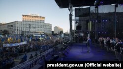 «І ця подія знаменує остаточний розрив нашої держави з Російською імперією, а українського демократичного світу – з авторитарним «русским миром», – сказав президент, виступаючи на урочистому концерті з нагоди запровадження безвізового режиму на Європейській площі в Києві, повідомила його прес-служба.