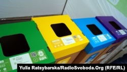 Природоохоронці встановили під мерією чотири різнокольорові сміттєві баки: синій – для паперу, зелений – для скла, жовтий – для пластику, фіолетовий – для бляшанок, відходів з металу.