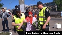 «Жінка 1939 року народження. Вона була сама по собі, не в колоні. Ні до чого не закликала. На неї склали адмінпротокол за статтею 173/3 Кодексу України про адміністративні правопорушення. Стаття передбачає покарання штрафом від 50 до 150 неоподатковуваних мінімумів доходів громадян (850–2550 гривень – ред.) із конфіскацією «георгіївської стрічки», – розповіла речниця обласної поліції Ольга Кузнецова.