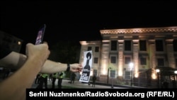 У Києві біля будівлі посольства Росії в Україні вночі провели акцію на підтримку українського режисера Олега Сенцова та інших ув'язнених в Росії українців.