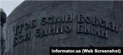 На демонтованому пам’ятнику в Переяславі були викарбувані слова церковнослов’янською: «Чтоб єсми вовєки вси єдино были».