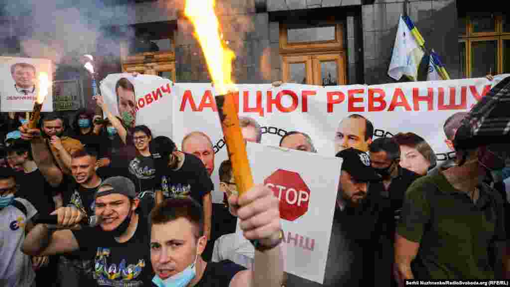Печерський районний суд Києва у справі про обрання запобіжного заходу народному депутатові, п’ятому президентові України Петру Порошенку зробив перерву до 1 липня. Під будівлею суду зібралися прихильники Порошенка, які після судового засідання рушили колоною до Офісу президента. На Банковій мітингувальники вимагали «припинити політичний тиск».
