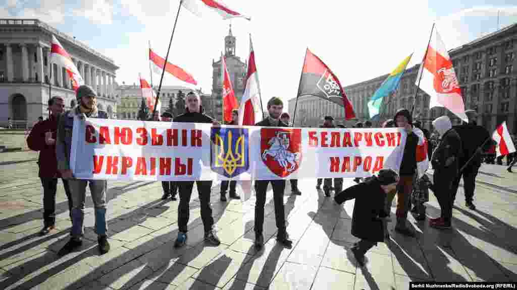 У Києві на майдані Незалежності відбулася акція з нагоди 101 річниці проголошення Білоруської Народної Республіки. Акцію провели представники Білоруського центру «Сябри», тактичної групи «Білорусь» та інших організацій.