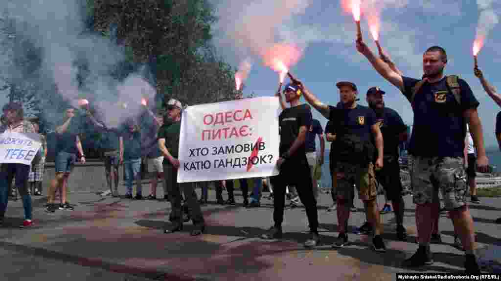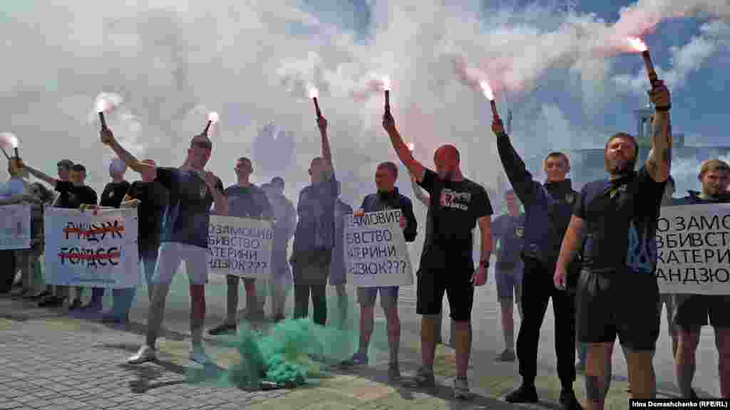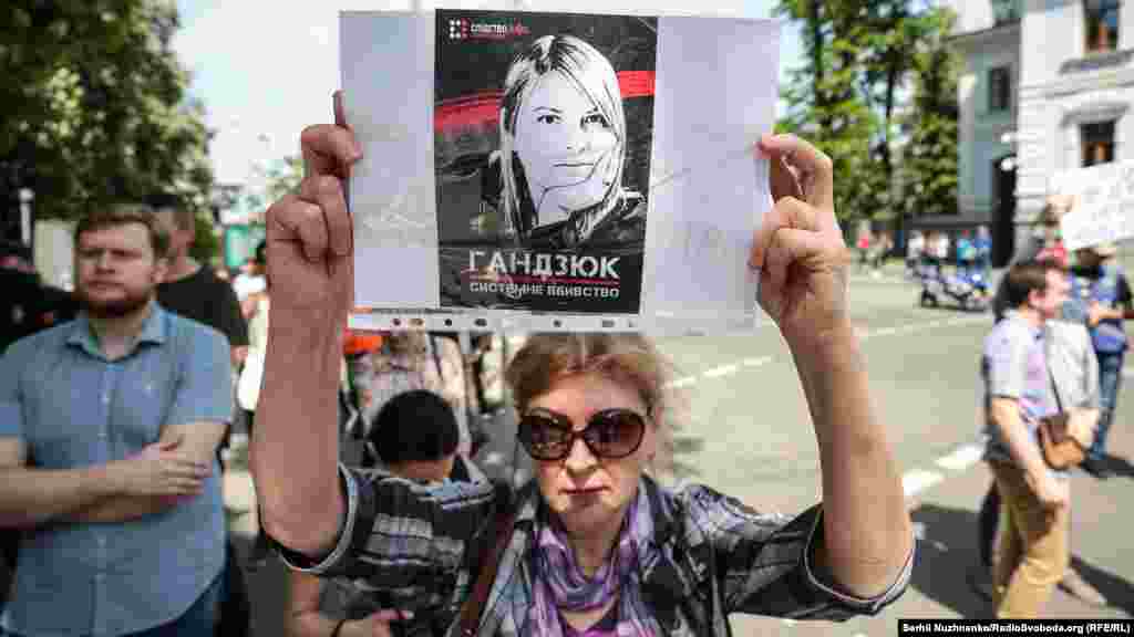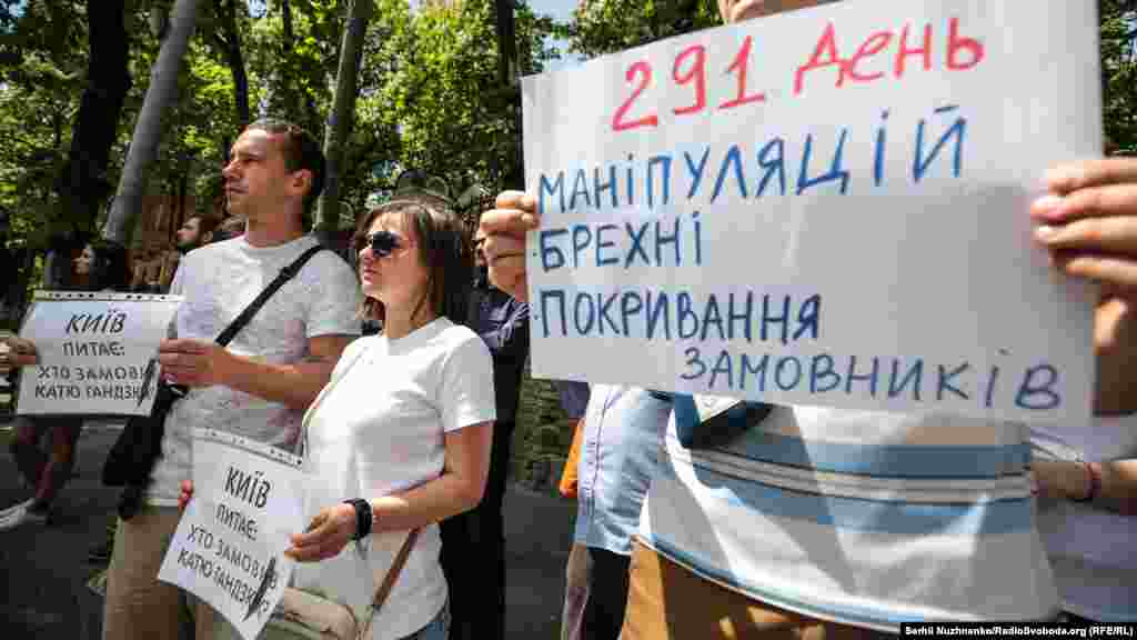 У центрі столиці, під стінами Адміністрації президента зібралося до сотні активістів, які зверталися до Петра Порошенка у фактично його останні дні президентства, та до новообраного президента Володимира Зеленського. В останнього вимагали «припинити терор проти активістів, який був за попередньої влади», а також покарати винних у вбивстві Гандзюк.