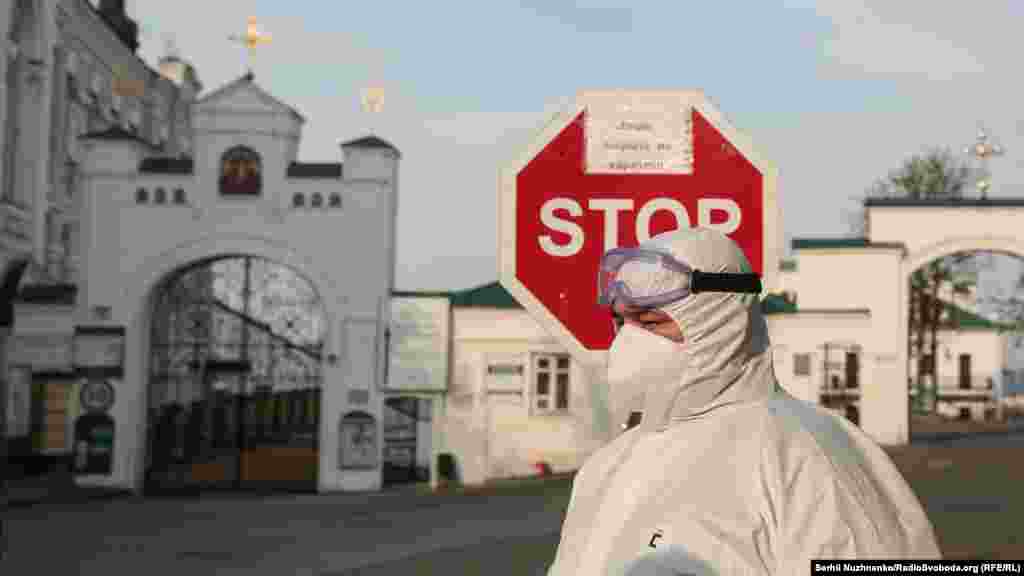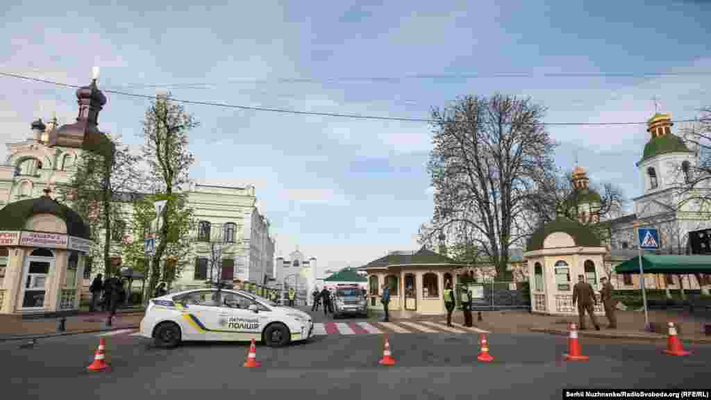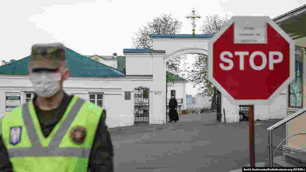 Ввечері поліція і Нацгвардія почали патрулювання біля Києво-Печерської лаври. На входах до лаври стоять медики, які проводять температурний скринінг. До лаври допускають лише її служителів і тих, хто може підтвердити документально необхідність перебувати там.