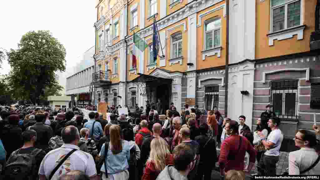 Близько двох сотень киян вийшли під посольство Італії в Києві, аби вимагати звільнення нацгвардійця Віталія Марківа.