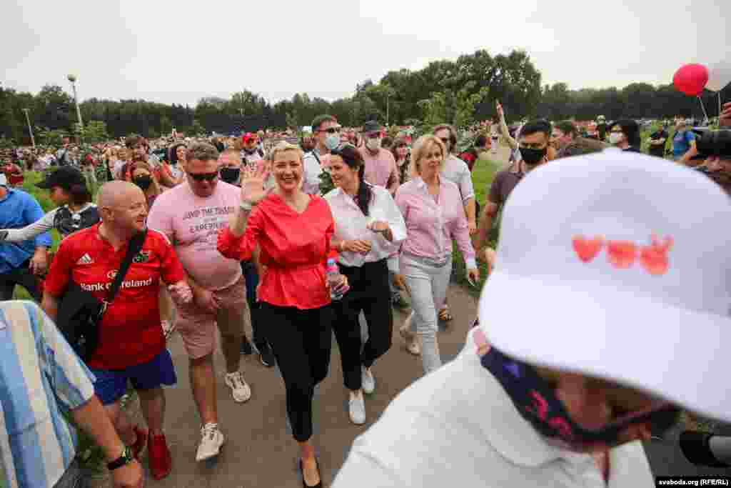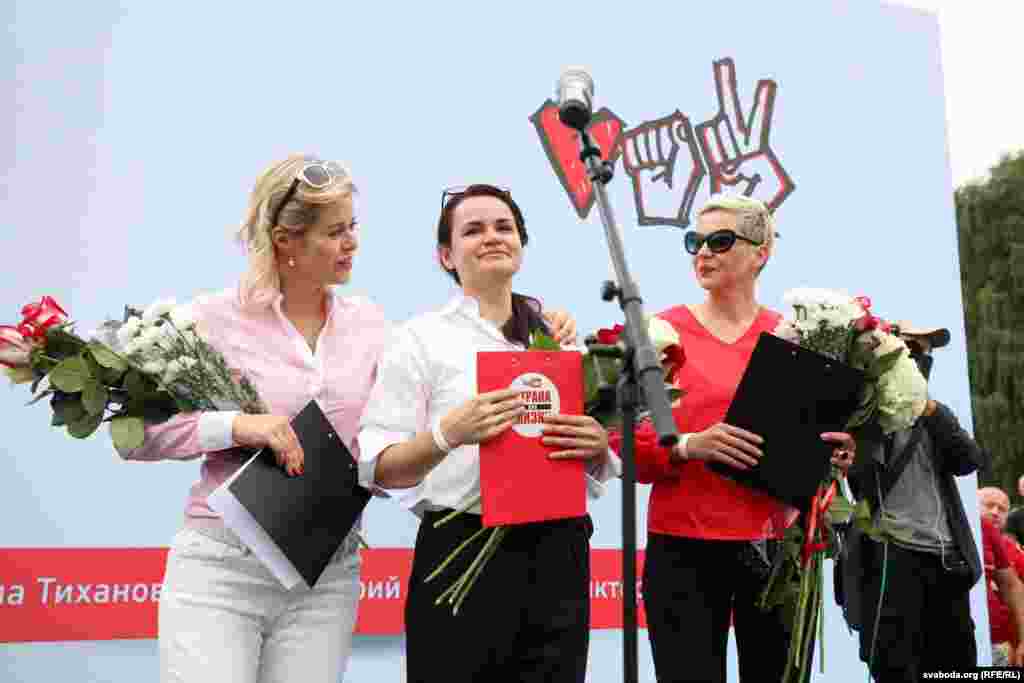 19 липня кандидатка в президенти Світлана Тихановська провела агітаційний пікет на площі Бангалор у Мінську. Разом із нею на пікеті були представниця штабу Віктора Бабарика Марія Колесникова і дружина Валерія Цепкала Вероніка.