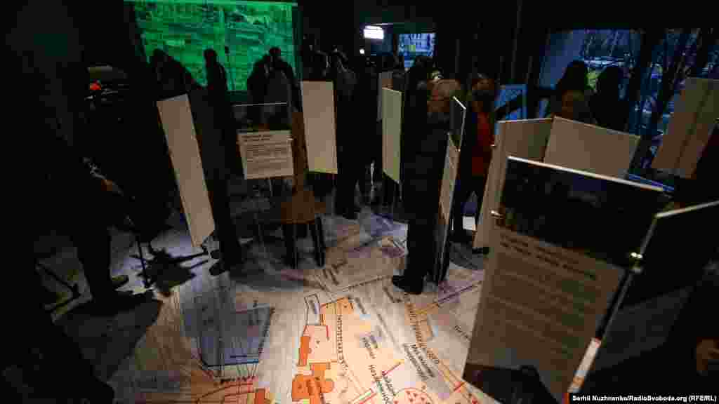На виставці представлена величезна мапа, де показані всі барикади та пам’ятні місця подій Майдану